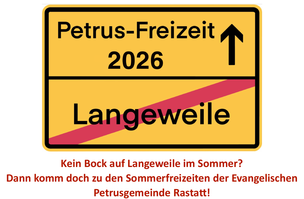 | Ötigheim | 11-12 Jahre (mit Übernachtung) | Uli Jung & Martin Kirchner | 01.-08.08.2026 | 160 € | am 8. März im Gottesdienst |